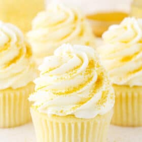 When it comes to champagne treats, Iโve made No Bake Champagne Cookie Pops, Mini Strawberry Champagne Cheesecakes, Mini Strawberry Champagne Trifles, a Strawberry Champagne Layer Cake and even Champagne Mousse! But of course these Champagne Cupcakes (originally posted back in 2014) have always been a favorite. Today Iโm sharing an updated version with you that’s even better than before!