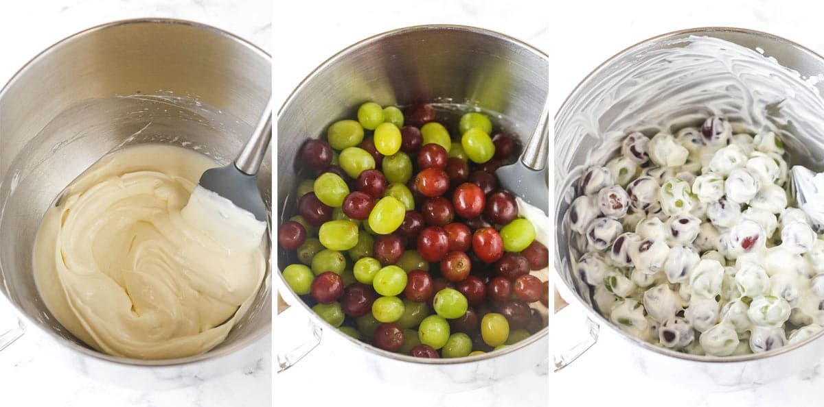 - Add the grapes and stir everything together until the grapes are well coated in the cream cheese mixture