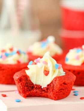 If you love everything red velvet & cheesecake, you have to try this full sized Red Velvet Cheesecake Recipe and this Red Velvet Blondie Cheesecake!