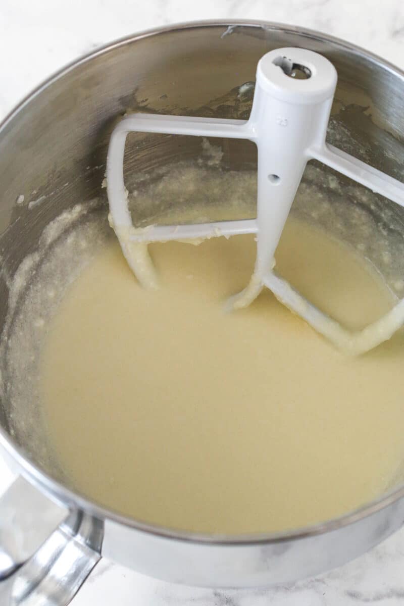 Cream together the butter and sugar on medium speed until light and fluffy, 2-3 minutes.