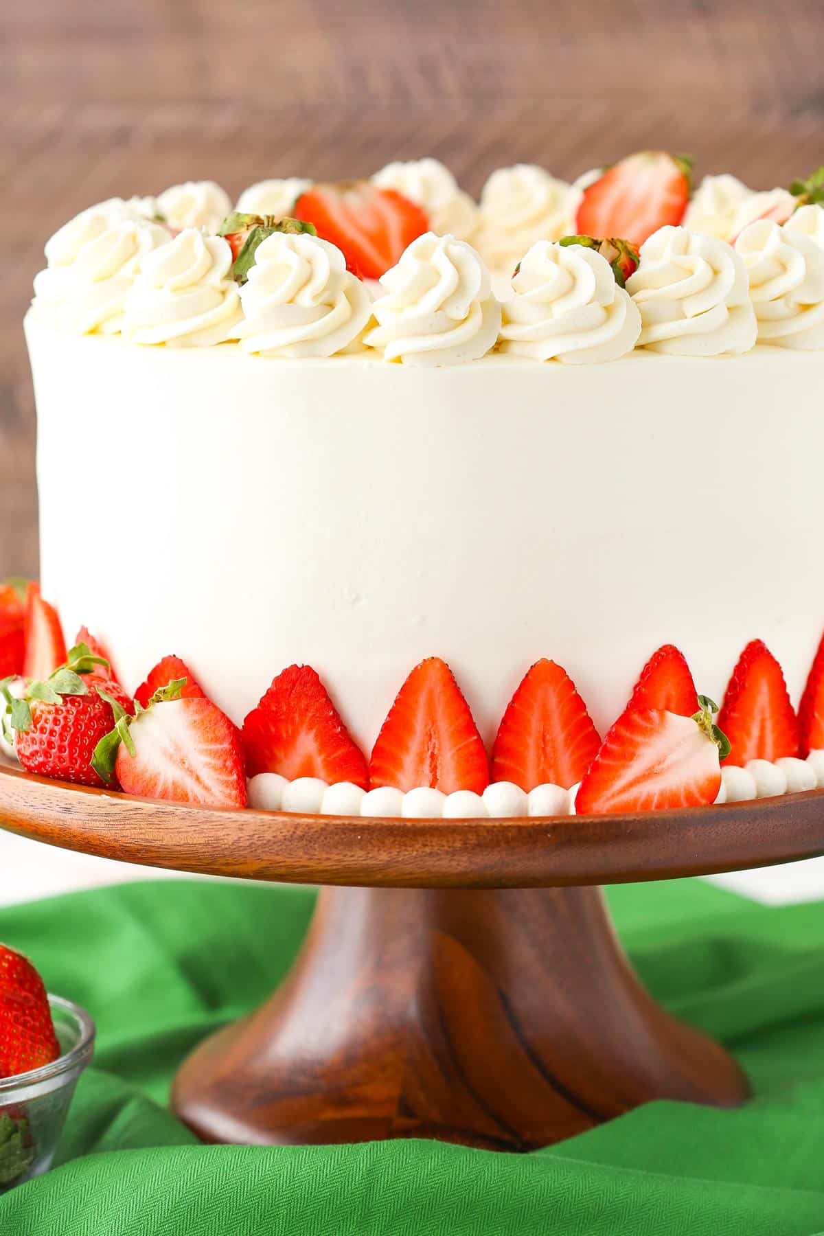 When I decided to make this cheesecake cake, I looked back to see what other cheesecake cakes I had on the blog and to my dismay, I found only ONE – this Chocolate Pumpkin Cheesecake Cake! There’s even two of them in my cookbook! How are there not more on the blog?! Well today we fix that, my friends. Starting with this fabulous combination of strawberries and cream.