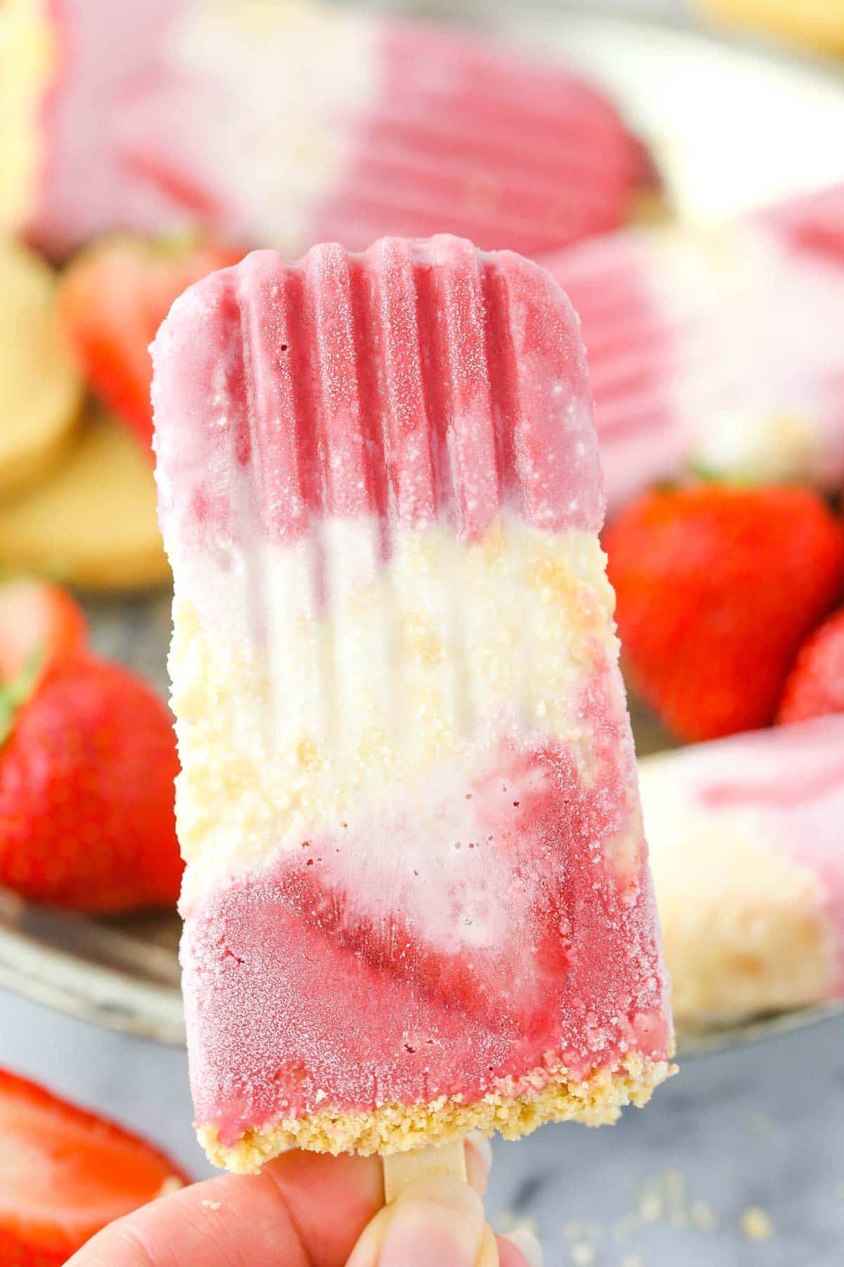 These Strawberry Shortcake Popsicles are easy to make and SO good! With layers of delicious strawberry + milky vanilla filled with shortbread, it’s truly like eating strawberry shortcake in popsicle form!