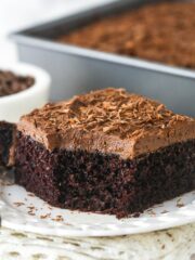 Warm slices up in the microwave for 30 seconds or so, for the best leftover cake!